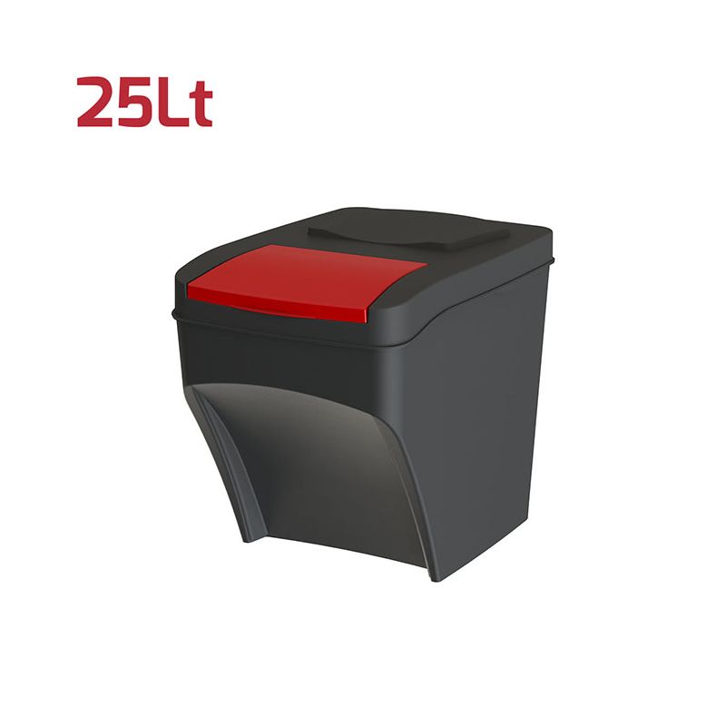 Pattumiera 25Lt Antracite con Battola Rossa