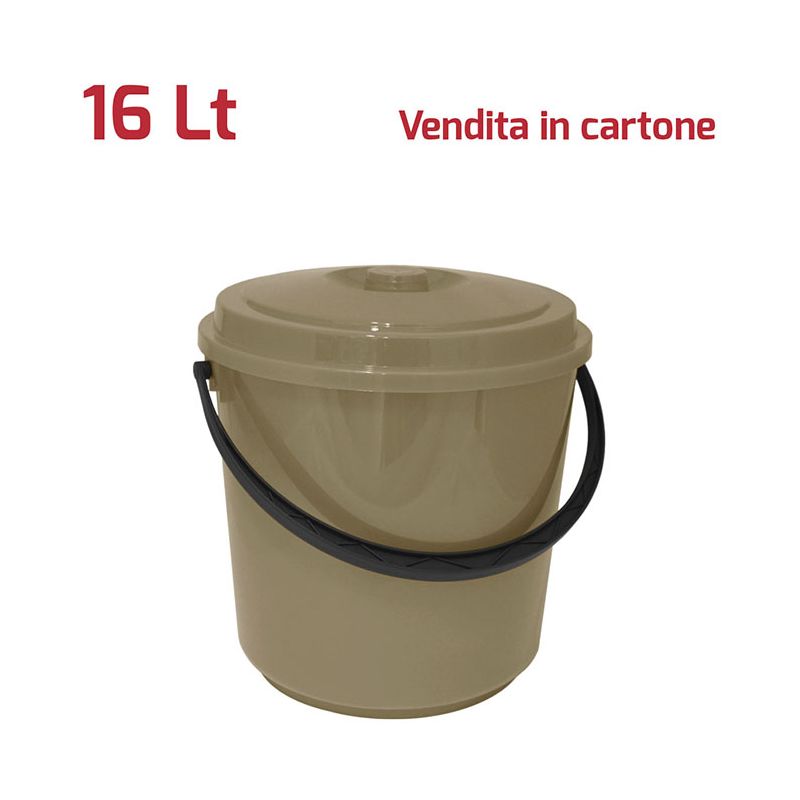 Bidone con coperchio in PP mocha e manico antracite. Pratico bidone da 16Lt ideale per la spazzatura ma può essere utilizzato anche per le pulizie o come semplice contenitore per la casa, il garage, il giardino o anche per i giocattoli. Utile sia in ambienti domestici che professionali, si presta bene per la raccolta differenziata dell'immondizia grazie agli svariati colori in gamma. Il manico permette di spostare il secchio con estrema facilità e la superficie lucida del prodotto ne semplifica la pulizia.