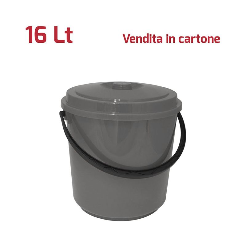 Bidone con coperchio in PP grigio talpa e manico antracite. Pratico bidone da 16Lt ideale per la spazzatura ma può essere utilizzato anche per le pulizie o come semplice contenitore per la casa, il garage, il giardino o anche per i giocattoli. Utile sia in ambienti domestici che professionali, si presta bene per la raccolta differenziata dell'immondizia grazie agli svariati colori in gamma. Il manico permette di spostare il secchio con estrema facilità e la superficie lucida del prodotto ne semplifica la pulizia.