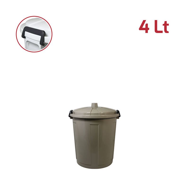 Bidone Mini 4Lt con coperchio in PP mocha e chiusure in plastica. Pratico bidone utile sia in ambienti professionali che domestici e adatto sia all'uso esterno che interno: ideale per la spazzatura, per la cura dell'orto o del giardino. Le chiusure in plastica assicurano che i rifiuti e gli odori rimangano all'interno. Il materiale in cui è realizzato rende il bidone resistente, duraturo e facile da pulire grazie alla superficie lucida. Con la vasta gamma di colori e le diverse capacità sono ideali anche per la raccolta differenziata.