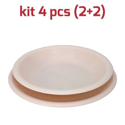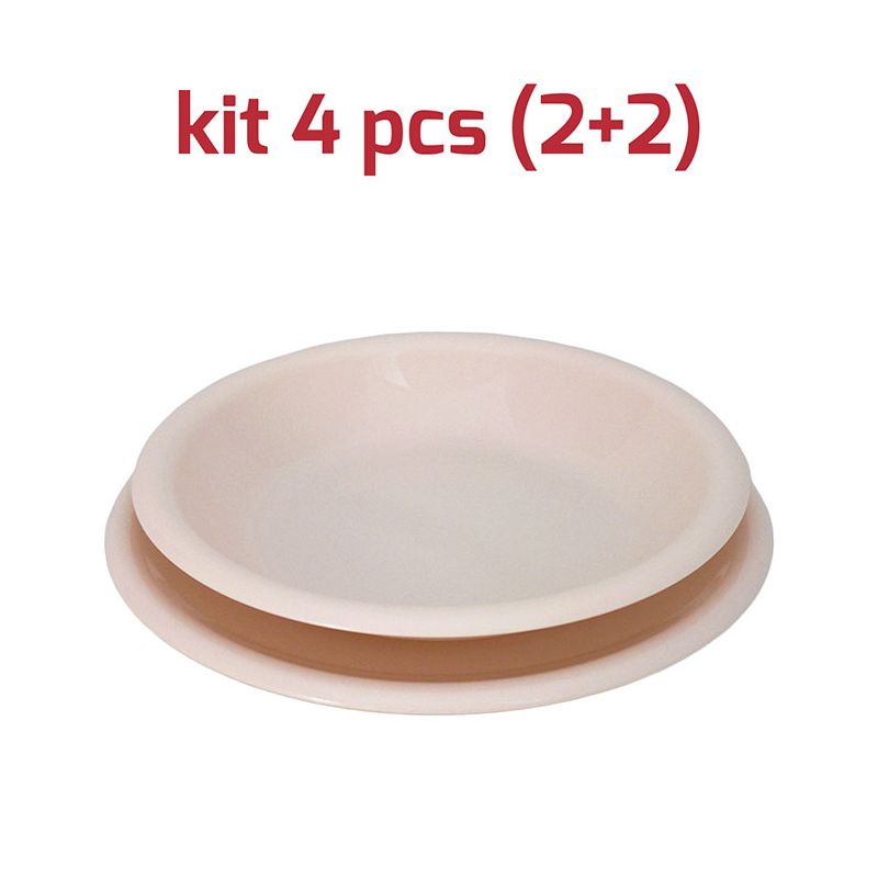 Kit di 4 piatti Elegance, 2 piatti piani + 2 piatti fondi in PP rosa antico. Dal design semplice e pulito sono ideali per l'uso quotidiano ma anche per occasioni speciali. Sono riutilizzabili, robusti, comodi e lavabili in lavastoviglie. Grazie ai numerosi colori disponibili è facile creare combinazioni che renderanno la tua tavola unica e originale.