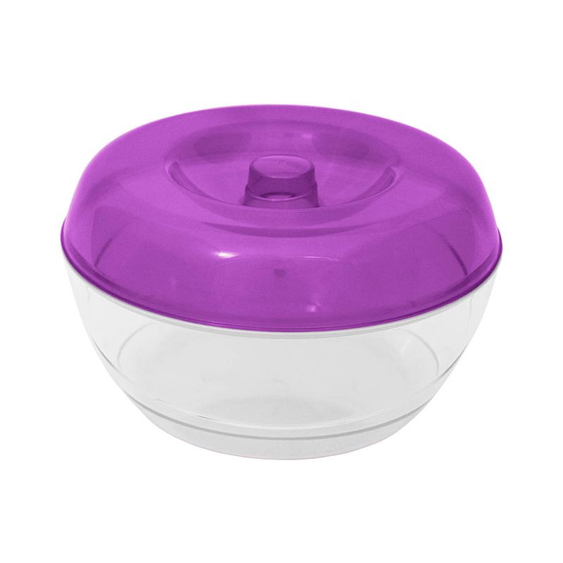 Biscottiera Allegra in PS trasparente con coperchio viola trasparente. Elegante e pratico contenitore realizzato con materiale cristallino che lo rende adatto ad essere tenuto in bella vista sul piano della cucina. Dall'aspetto moderno, è pensato per contenere biscotti ma non solo, ad esempio può essere usato per le cialde del caffè, frutta o caramelle. Sia base che coperchio sono lavabili in lavastoviglie.