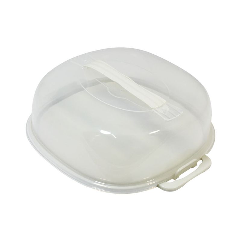 Portadolci in PP bianco panna e cloche trasparente compatto e pratico. È indicato per dolci di diametro massimo di 22cm. Con il suo design squadrato si presta benissimo anche a torte e dolci di forme diverse come quadrate e rettangolari. Grazie al manico a scomparsa e alle chiusure a clip puoi portare il dolce fuori casa in tutta sicurezza ma anche semplicemente conservarlo nella credenza. Poche preoccupazioni perché può essere lavato in lavastoviglie ed è resistente agli urti lasciando a te solo il piacere di gustarti il dolce.