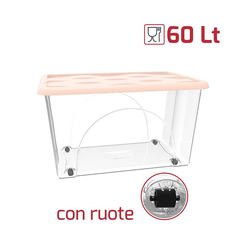 Storage box Dune da 60lt in PP trasparente con coperchio rosa antico indispensabile nell'organizzazione di tutti gli ambienti. Il coperchio ha un design unico e moderno esaltato dall'incisione presente sulle onde. Leggero ma robusto è l'ideale per contenere abbigliamento, scarpe, giocattoli, libri, attrezzi per il fai da te, accessori per la pulizia... di tutto insomma! Può essere riposto dentro armadi, sgabuzzini, scaffalature, sotto il letto o in soffitta. Le 4 ruote intercambiabili in PP nero si montano in un gesto e potrai decidere in che senso far girare le ruote in base alle tue necessità. Grazie a questo box storage manterrai ambienti domestici e professionali perfettamente ordinati e puliti.