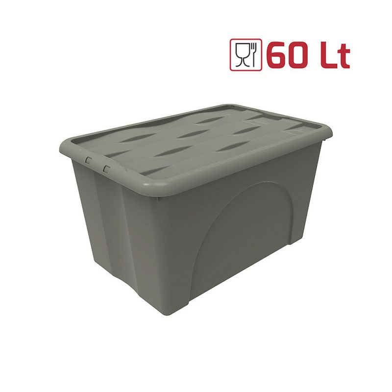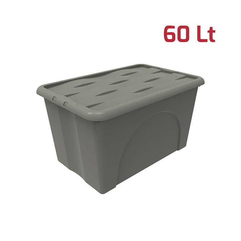 Storage box Dune con coperchio da 60lt in PP grigio talpa indispensabile nell'organizzazione di tutti gli ambienti. Il coperchio ha un design unico e moderno esaltato dall'incisione presente sulle onde. Leggero ma robusto è l'ideale per contenere abbigliamento, scarpe, giocattoli, libri, attrezzi per il fai da te, accessori per la pulizia... di tutto insomma! Può essere riposto dentro armadi, sgabuzzini, scaffalature, sotto il letto o in soffitta. Grazie a questo box storage manterrai ambienti domestici e professionali perfettamente ordinati e puliti.