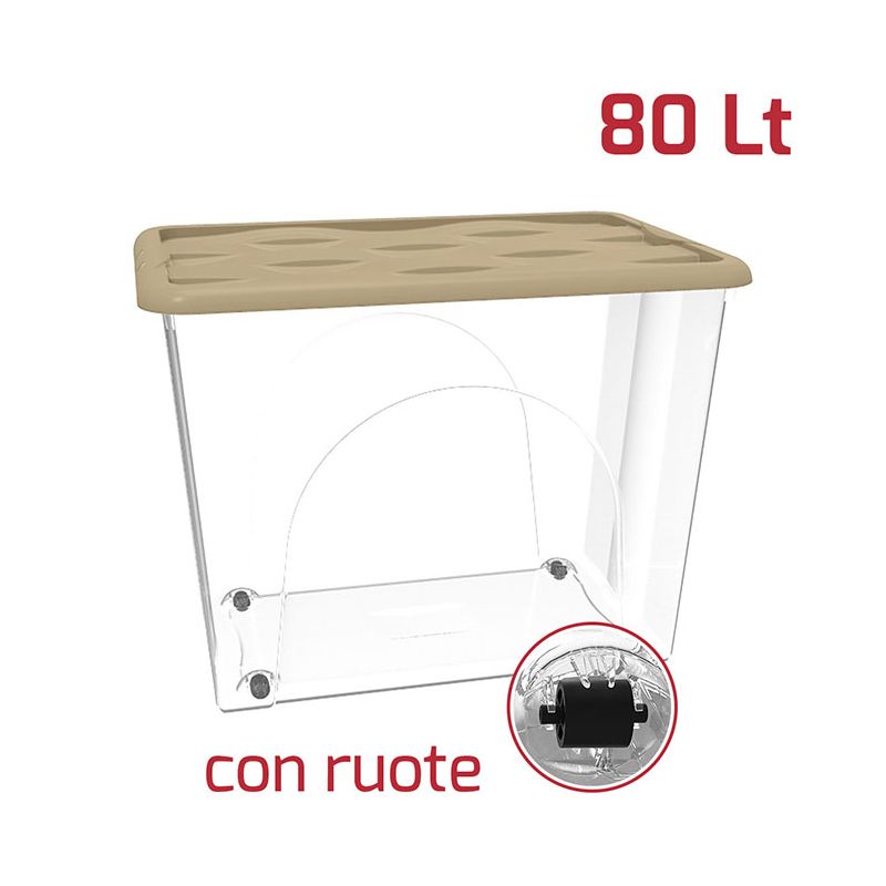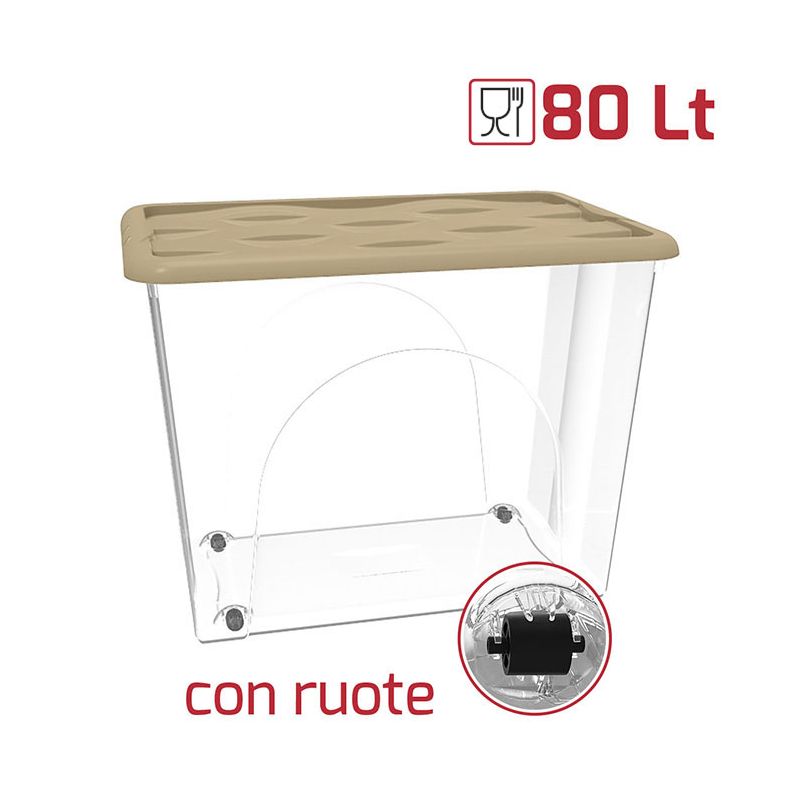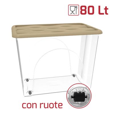 Storage box Dune da 60lt in PP trasparente con coperchio mocha indispensabile nell'organizzazione di tutti gli ambienti. Il coperchio ha un design unico e moderno esaltato dall'incisione presente sulle onde. Leggero ma robusto è l'ideale per contenere abbigliamento, scarpe, giocattoli, libri, attrezzi per il fai da te, accessori per la pulizia... di tutto insomma! Può essere riposto dentro armadi, sgabuzzini, scaffalature, sotto il letto o in soffitta. Le 4 ruote intercambiabili in PP nero si montano in un gesto e potrai decidere in che senso far girare le ruote in base alle tue necessità. Grazie a questo box storage manterrai ambienti domestici e professionali perfettamente ordinati e puliti.