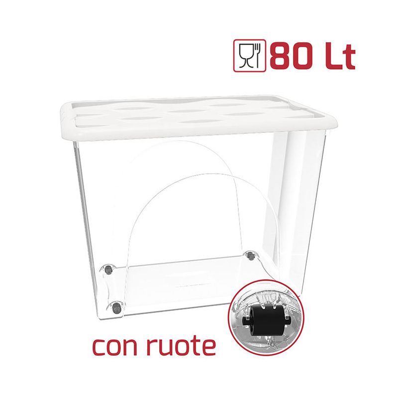 Storage box Dune da 60lt in PP trasparente con coperchio bianco panna indispensabile nell'organizzazione di tutti gli ambienti. Il coperchio ha un design unico e moderno esaltato dall'incisione presente sulle onde. Leggero ma robusto è l'ideale per contenere abbigliamento, scarpe, giocattoli, libri, attrezzi per il fai da te, accessori per la pulizia... di tutto insomma! Può essere riposto dentro armadi, sgabuzzini, scaffalature, sotto il letto o in soffitta. Le 4 ruote intercambiabili in PP nero si montano in un gesto e potrai decidere in che senso far girare le ruote in base alle tue necessità. Grazie a questo box storage manterrai ambienti domestici e professionali perfettamente ordinati e puliti.