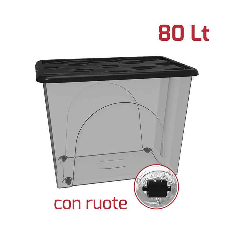 Storage box Dune da 80lt in PP fumè con coperchio nero indispensabile nell'organizzazione di tutti gli ambienti. Il coperchio ha un design unico e moderno esaltato dall'incisione presente sulle onde. Leggero ma robusto è l'ideale per contenere abbigliamento, scarpe, giocattoli, libri, attrezzi per il fai da te, accessori per la pulizia... di tutto insomma! Può essere riposto dentro armadi, sgabuzzini, scaffalature, sotto il letto o in soffitta. Le 4 ruote intercambiabili in PP nero si montano in un gesto e potrai decidere in che senso far girare le ruote in base alle tue necessità. Grazie a questo box storage manterrai ambienti domestici e professionali perfettamente ordinati e puliti.