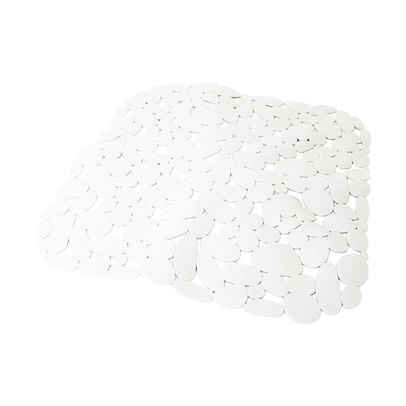 Tappetino per doccia Rock in PVC bianco. La superficie del piano della doccia è spesso molto scivoloso e questo tappetino diventa indispensabile. Grazie alle numerose e forti ventose presenti sotto, il tappetino è antiscivolo e sicuro. Aderisce perfettamente al piano della doccia e sulla confezione sono presenti le istruzioni per posizionarlo al meglio. I fori creati dal design ""a ciottolato"" invece permettono all'acqua di defluire sotto il tappetino.