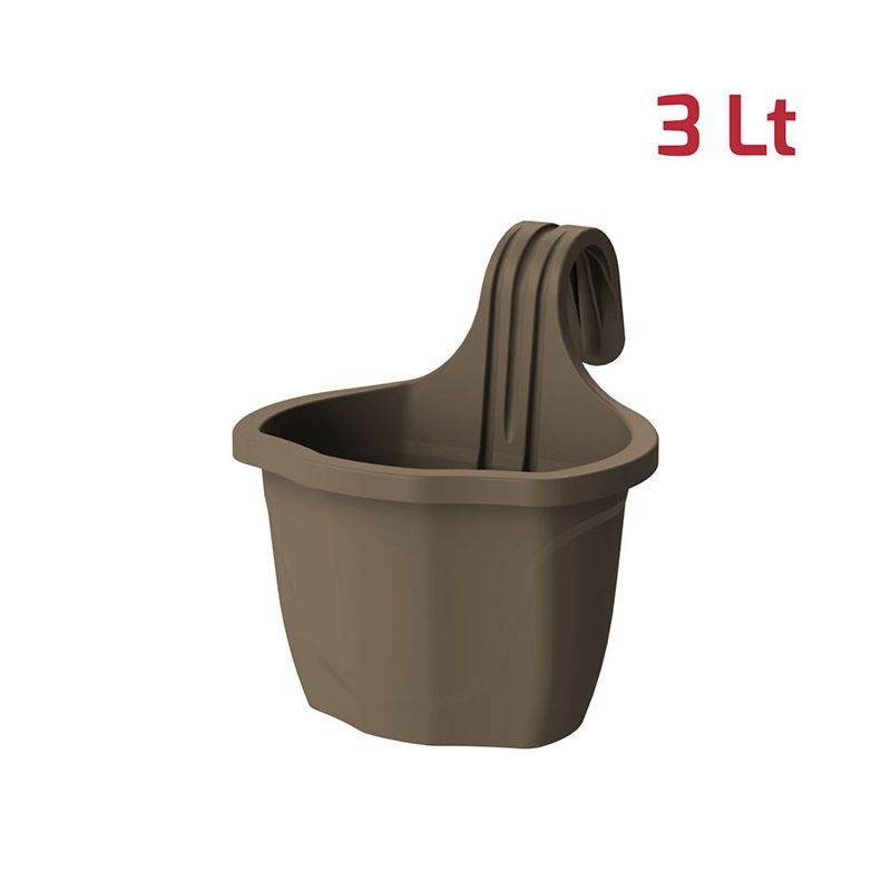 Vaso per Ringhiera Flora con Gancio 3L Marrone