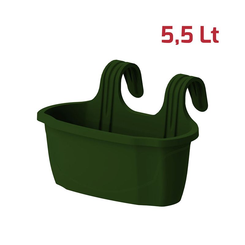 Vaso Ringhiera Flora con 2 Ganci 5,5L Verde