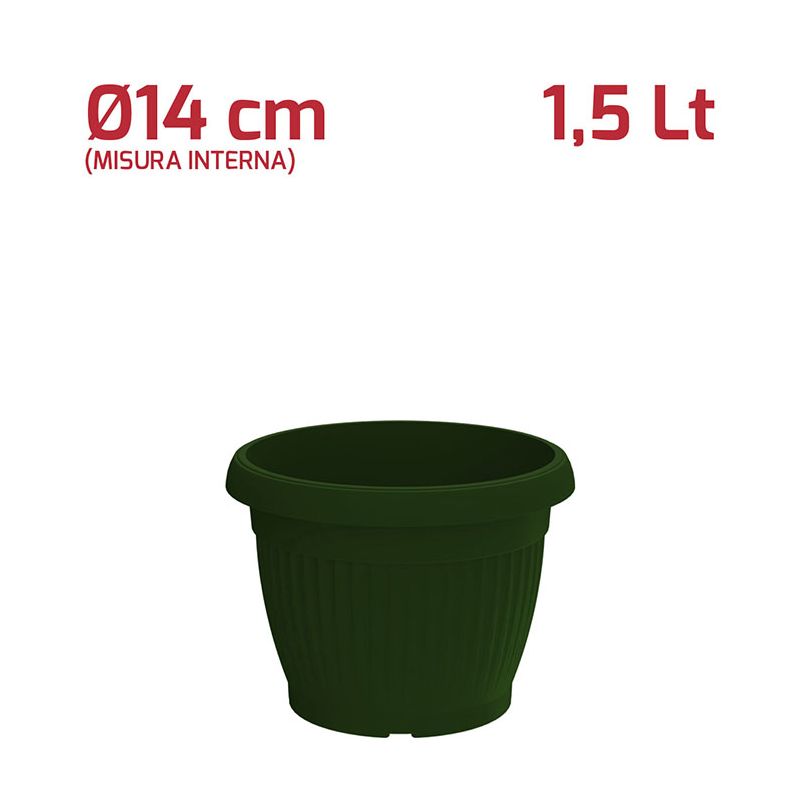 Vaso tondo Gaia in PP verde. Vaso dal design moderno utilizzabile sia all'esterno che all'interno grazie ai materiali di alta qualità e si adatta bene a qualsiasi stile. Sul fondo sono presenti i fori per lo scolo dell'acqua in eccesso. A parte è possibile acquistare il sottovaso.