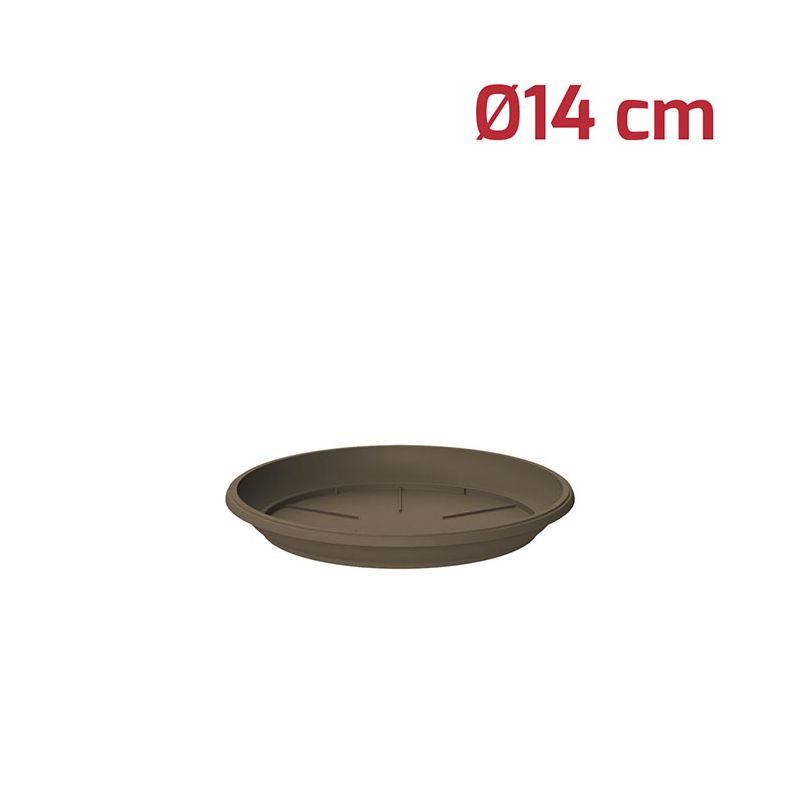 Sottovaso tondo Gaia in PP marrone. Utilizzabile sia all'esterno che all'interno grazie ai materiali di alta qualità, è compatibile con il vaso tondo Gaia Ø14cm (dimensione interna).