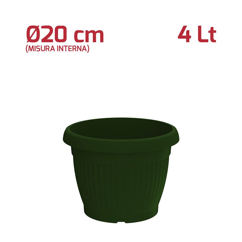 Vaso tondo Gaia in PP verde. Vaso dal design moderno utilizzabile sia all'esterno che all'interno grazie ai materiali di alta qualità e si adatta bene a qualsiasi stile. Sul fondo sono presenti i fori per lo scolo dell'acqua in eccesso. A parte è possibile acquistare il sottovaso.