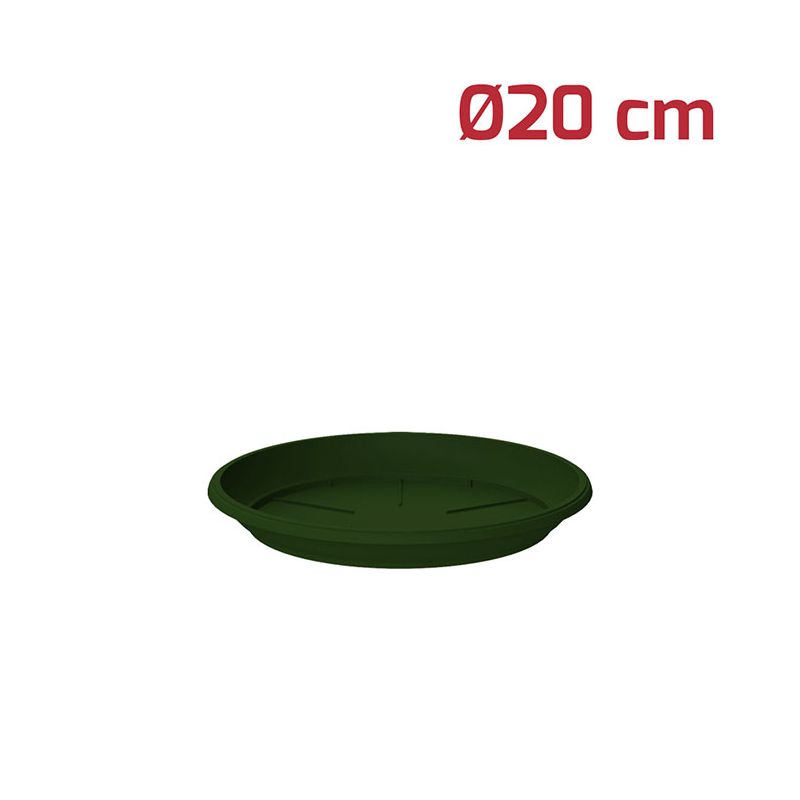Sottovaso tondo Gaia in PP verde. Utilizzabile sia all'esterno che all'interno grazie ai materiali di alta qualità, è compatibile con il vaso tondo Gaia Ø20cm (dimensione interna).