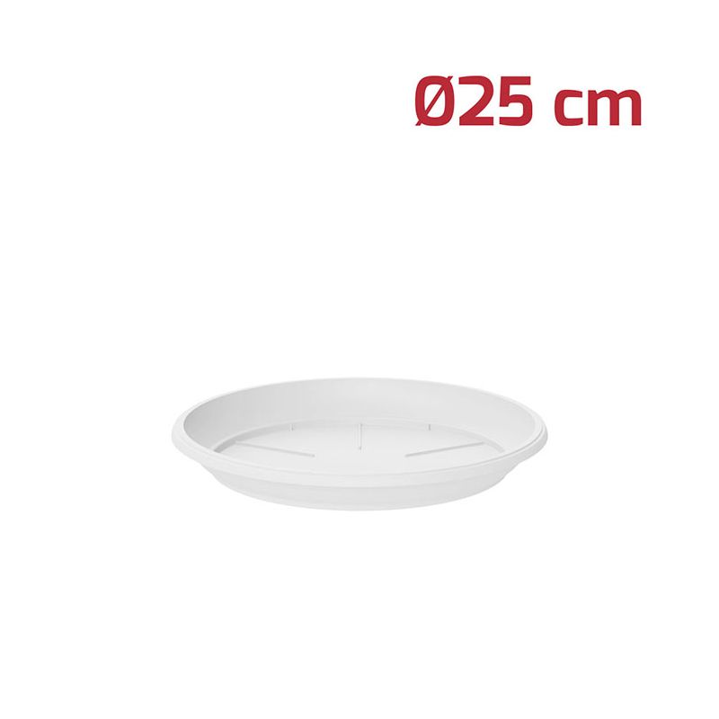 Sottovaso tondo Gaia in PP bianco. Utilizzabile sia all'esterno che all'interno grazie ai materiali di alta qualità, è compatibile con il vaso tondo Gaia Ø25cm (dimensione interna).