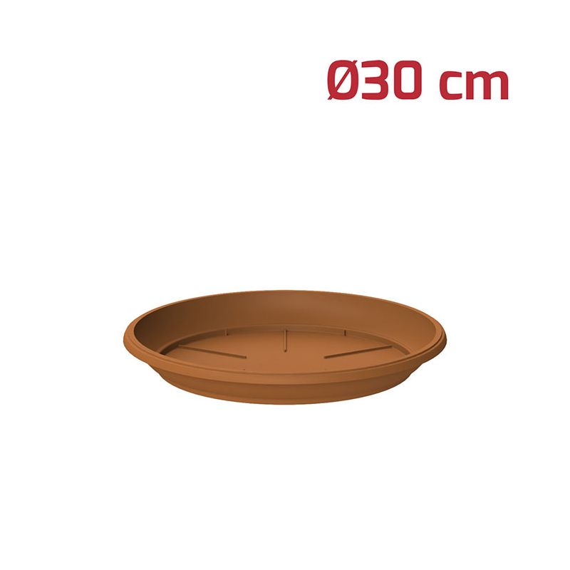 Sottovaso tondo Gaia in PP terracotta. Utilizzabile sia all'esterno che all'interno grazie ai materiali di alta qualità, è compatibile con il vaso tondo Gaia Ø30cm (dimensione interna).