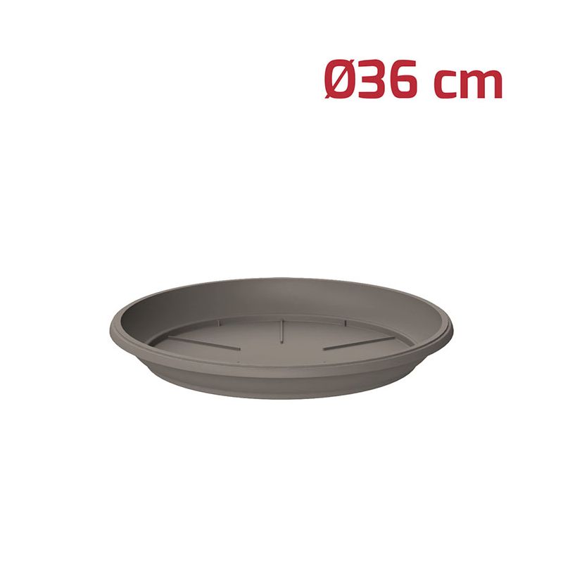 Sottovaso tondo Gaia in PP grigio. Utilizzabile sia all'esterno che all'interno grazie ai materiali di alta qualità, è compatibile con il vaso tondo Gaia Ø36cm (dimensione interna).