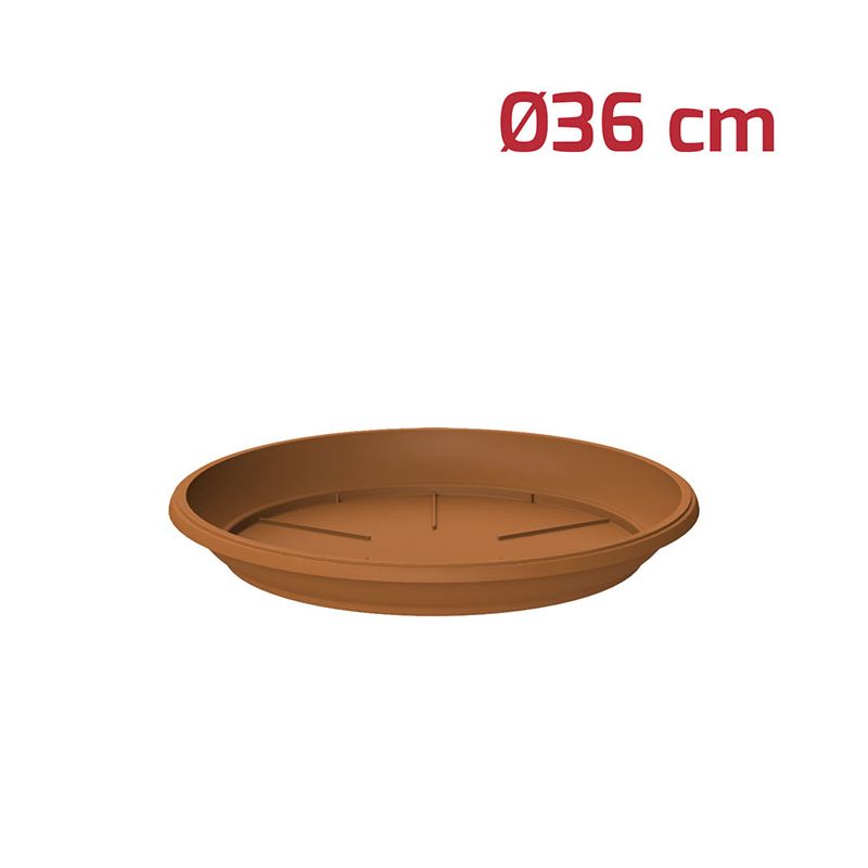 Sottovaso tondo Gaia in PP terracotta. Utilizzabile sia all'esterno che all'interno grazie ai materiali di alta qualità, è compatibile con il vaso tondo Gaia Ø36cm (dimensione interna).