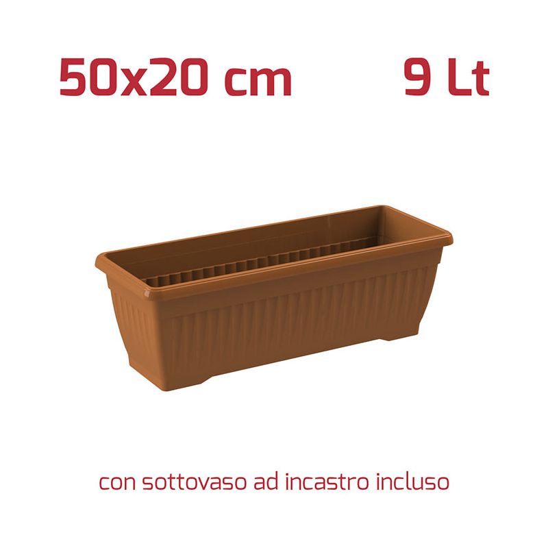 Vaso Rett. Gaia con Sottovaso 50x20cm Terracotta
