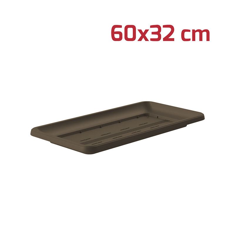 Sottovaso rettangolare Gaia in PP marrone. Utilizzabile sia all'esterno che all'interno grazie ai materiali di alta qualità, è compatibile con il vaso rettangolare Gaia 60x32cm.