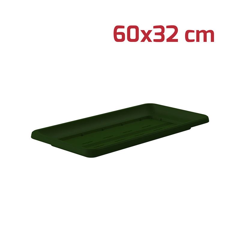 Sottovaso rettangolare Gaia in PP verde. Utilizzabile sia all'esterno che all'interno grazie ai materiali di alta qualità, è compatibile con il vaso rettangolare Gaia 60x32cm.