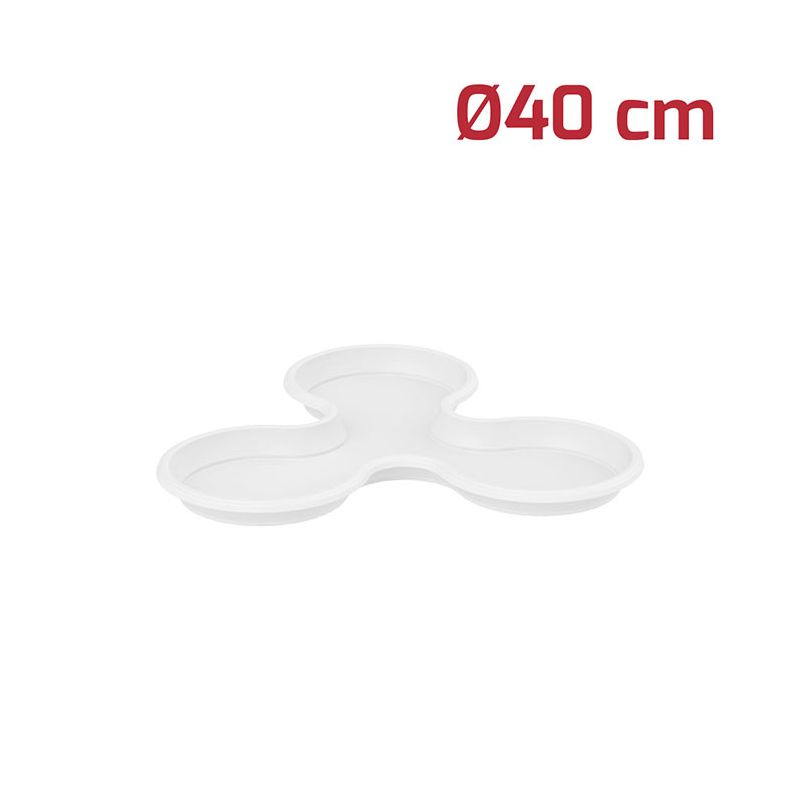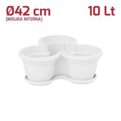 Sottovaso Trio in PP bianco. Utilizzabile sia all'esterno che all'interno grazie ai materiali di alta qualità, è compatibile con il vaso impilabile Trio.