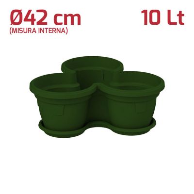 Sottovaso Trio in PP verde. Utilizzabile sia all'esterno che all'interno grazie ai materiali di alta qualità, è compatibile con il vaso impilabile Trio.