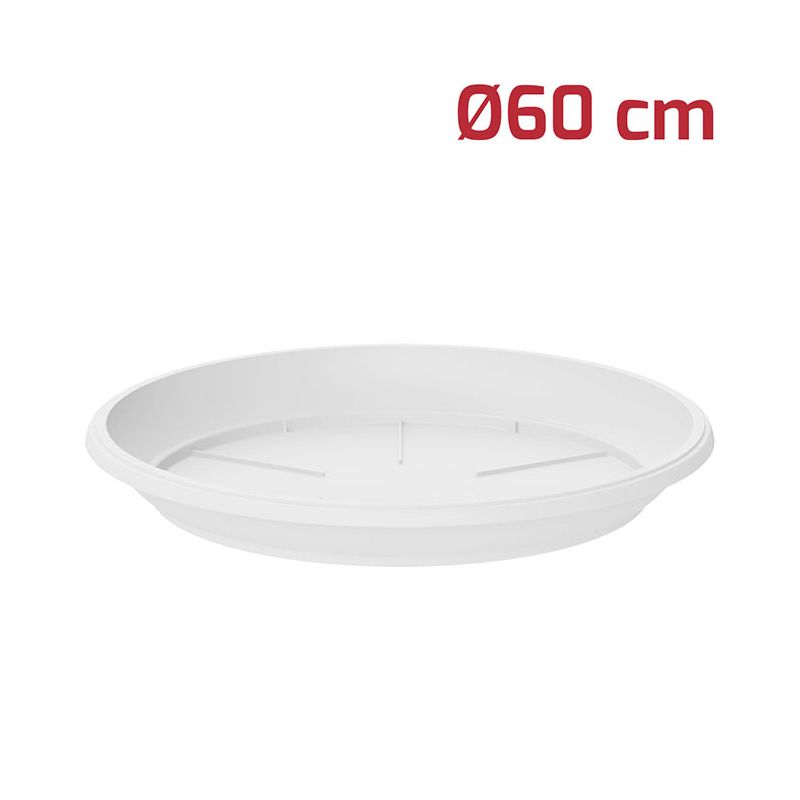 Sottovaso tondo Gaia in PP bianco. Utilizzabile sia all'esterno che all'interno grazie ai materiali di alta qualità, è compatibile con il vaso tondo Gaia Ø60cm (dimensione interna).