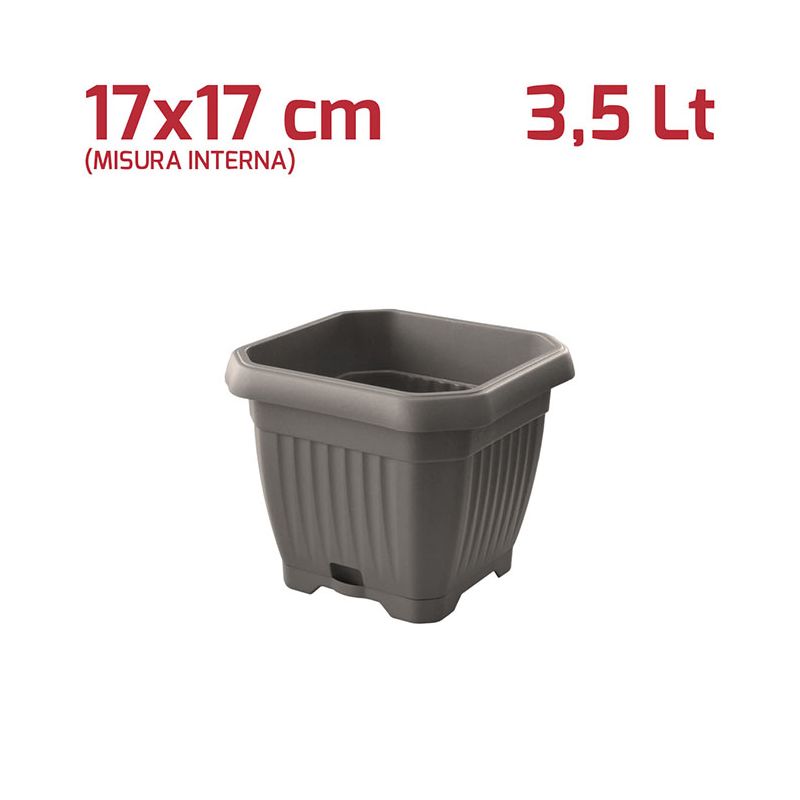 Vaso Quadrato Gaia con Sottovaso 17cm Grigio