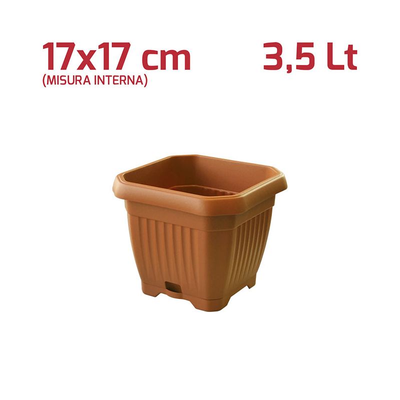 Vaso Quadrato Gaia con Sottovaso 17cm Terracotta