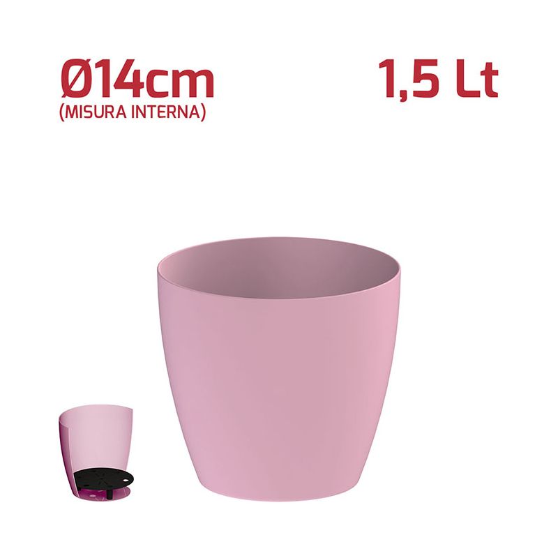 Vaso rotondo Fuji in PP old pink con ghiera interna per il drenaggio dell'acqua. Dalla linea semplice, pulita ed elegante si adatta a qualsiasi ambiente sia interno che esterno. La superficie lucida e la ghiera removibile permette una pulizia veloce e completa.