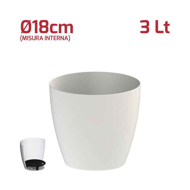 Vaso rotondo Fuji in PP bianco con ghiera interna per il drenaggio dell'acqua. Dalla linea semplice, pulita ed elegante si adatta a qualsiasi ambiente sia interno che esterno. La superficie lucida e la ghiera removibile permette una pulizia veloce e completa.