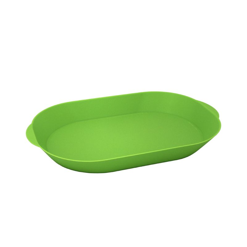 Vassoio ovale Swim in PP verde lime. I manici a mezzaluna lo rendono pratico e facile da trasportare e il suo bordo alto ma svasato assicura piattini e bicchieri all'interno e aumentarne la supericie di appoggio. Ideale per servire tè, caffè o anche una romantica colazione a letto. Lavabile in lavastoviglie e certificato per il contatto alimentare.