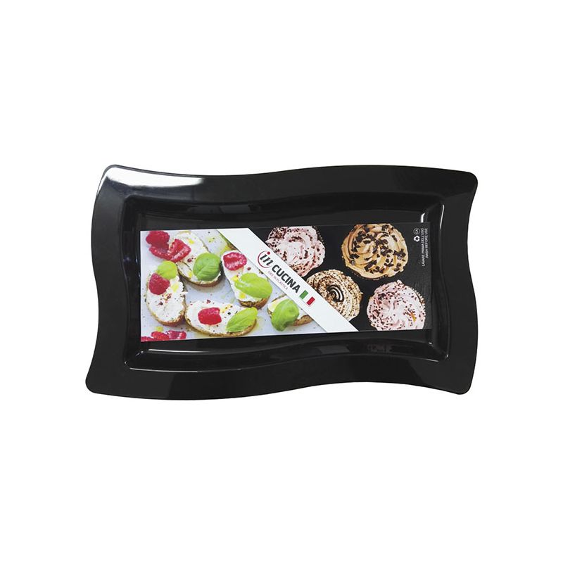 Vassoio Infinity in PP nero. Dal design elegante e raffinato è ideale per servire antipasti da condividere, dolci, frutta o per portare a tavola caffè o liquori. Certificato per il contatto alimentare e il lavaggio in lavastoviglie. Scopri tutti gli altri prodotti della linea Infinity da combinare in forme e colori.