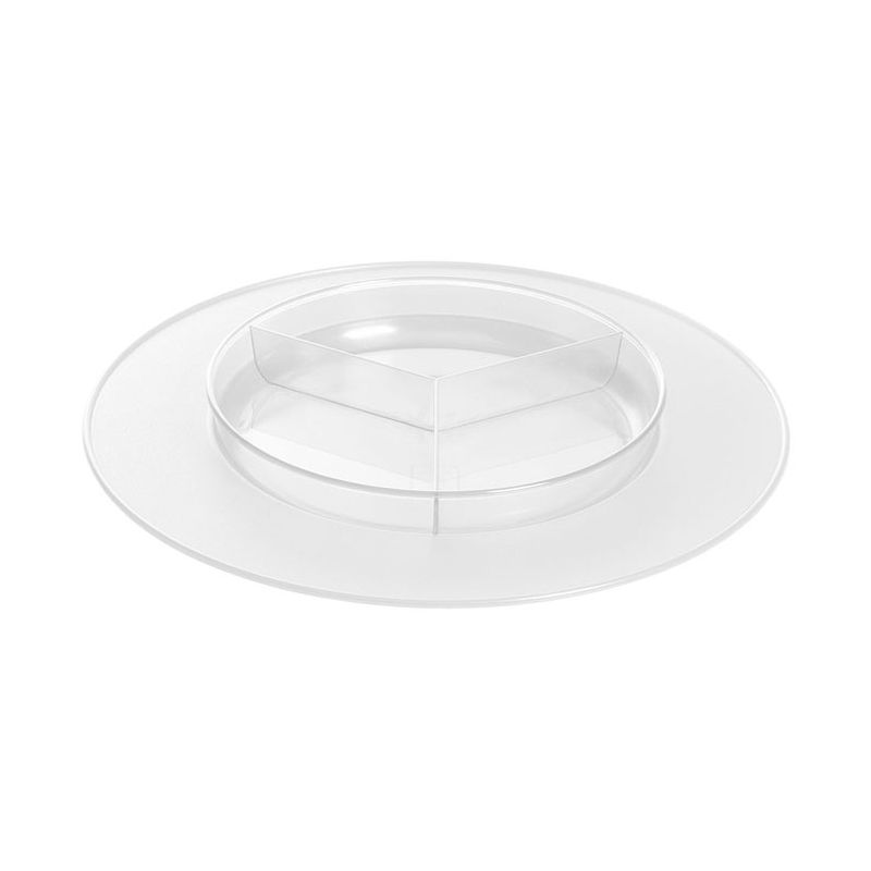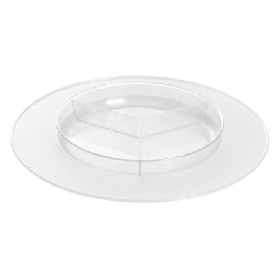 Set composto da un sottopiatto e un'antipastiera in PS trasparente, ideale per servire stuzzichini o salse diverse in un unico piatto. L'aspetto cristallino e il design minimale rende il set adatto ad ogni occasione. Certificato per il contatto alimentare, è anche lavabile in lavastoviglie per una pulizia perfetta. Il piatto e l'antipastiera posso essere usati anche separatamente in base alle necessità.